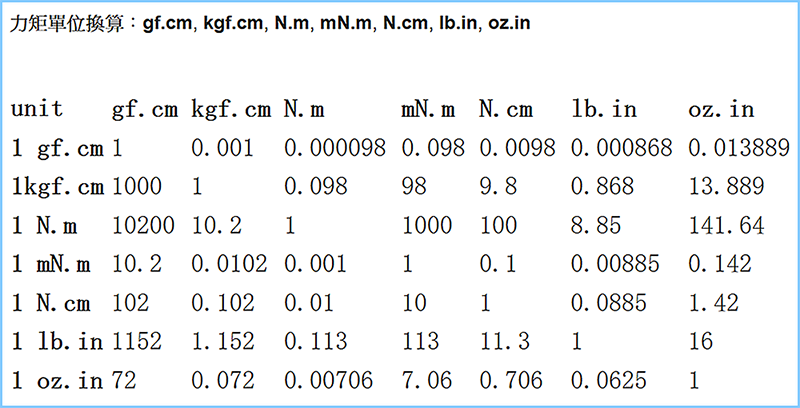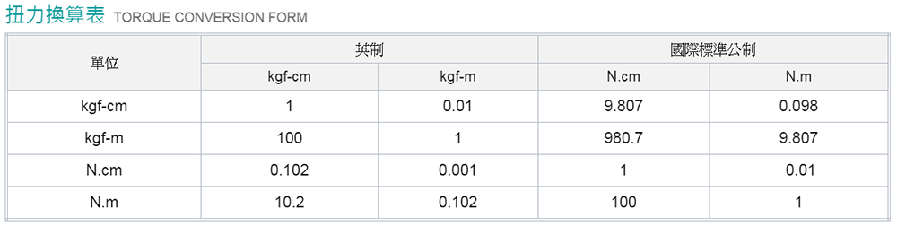 扭力轉換表