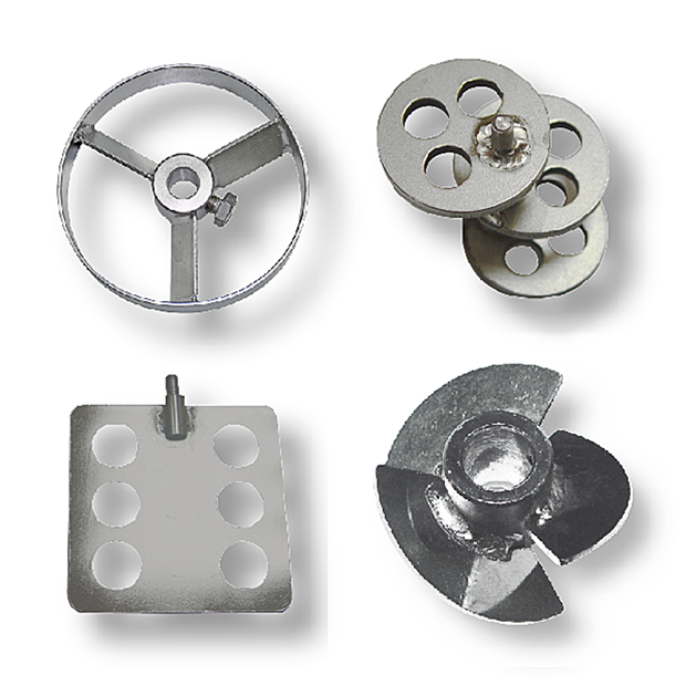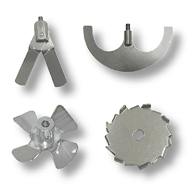 ♦高剪切葉片:均質分散式、渦輪式,常用於中高速運轉時,攪拌添加介質,用於均質、分散、乳化。
