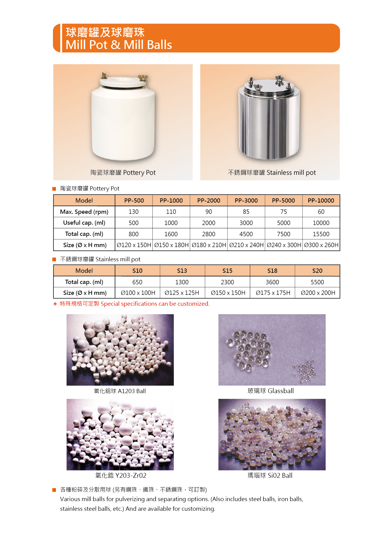 ●不鏽鋼球磨罐規格: