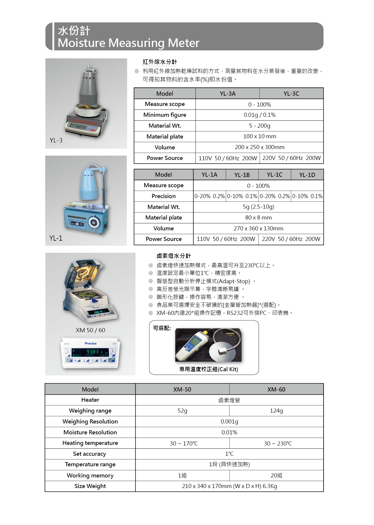 利用紅外線加熱乾燥試料的方式,旋鈕式控制,測量範圍0 - 100%。