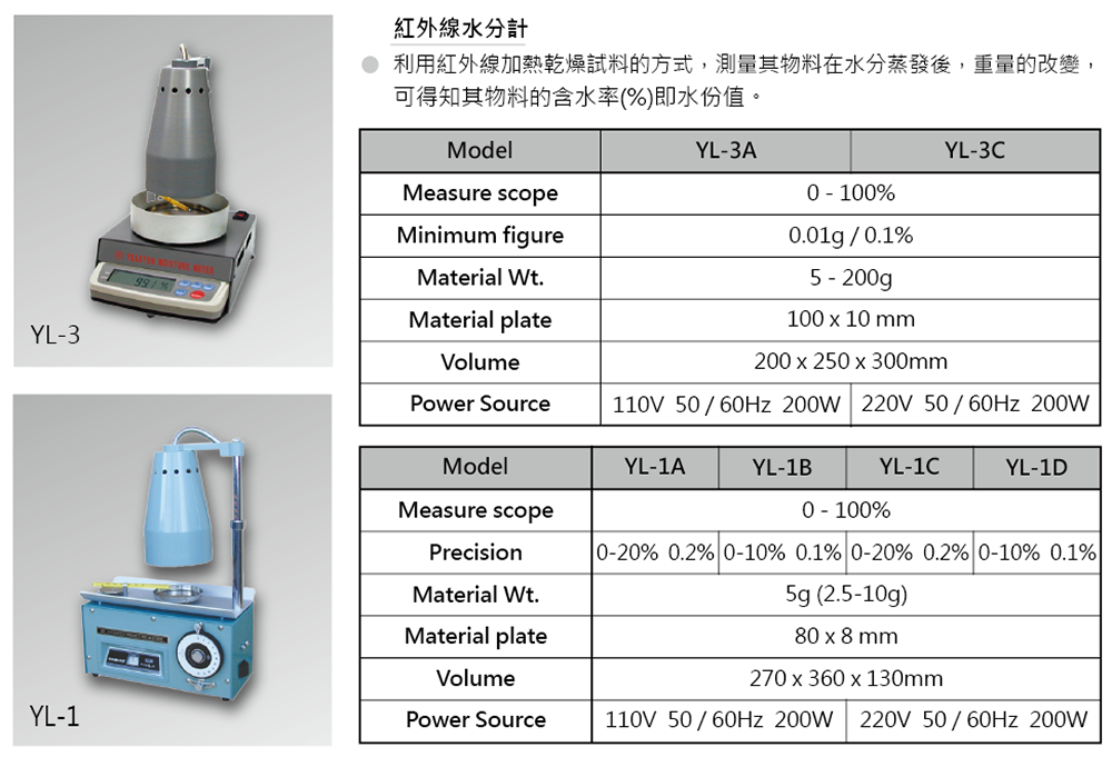 紅外線水份計 YL-1A/YL-1B/YL-1C/YL-1D