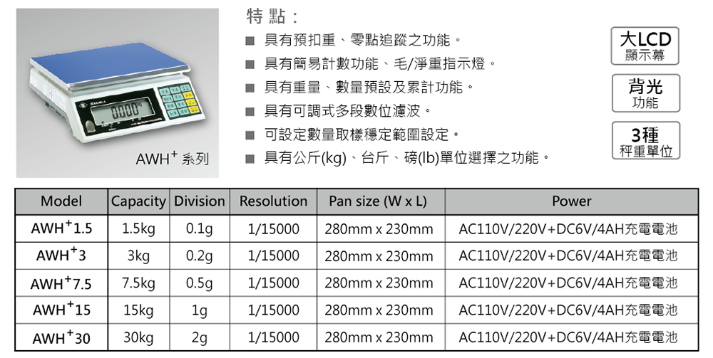 電子計重秤 AWH+系列