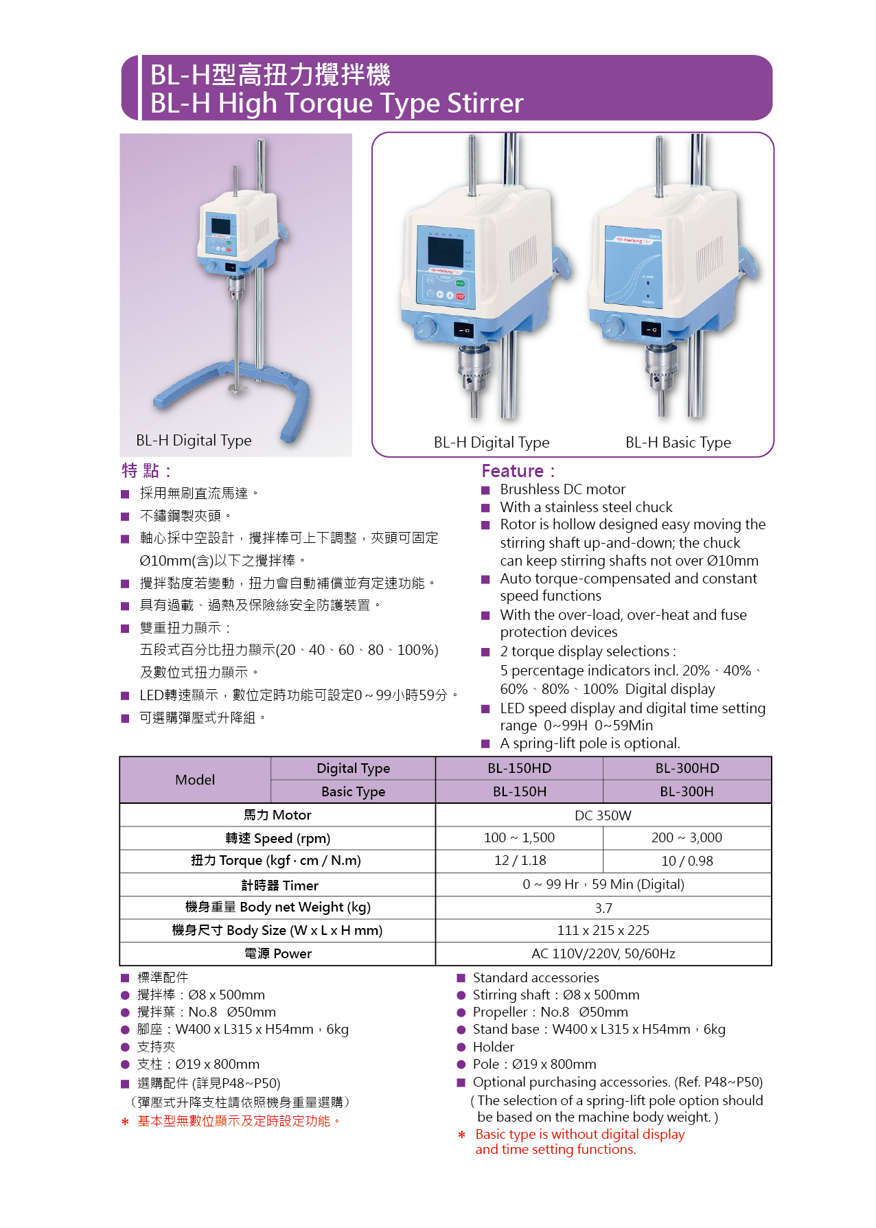 ● BL-300HD規格:
