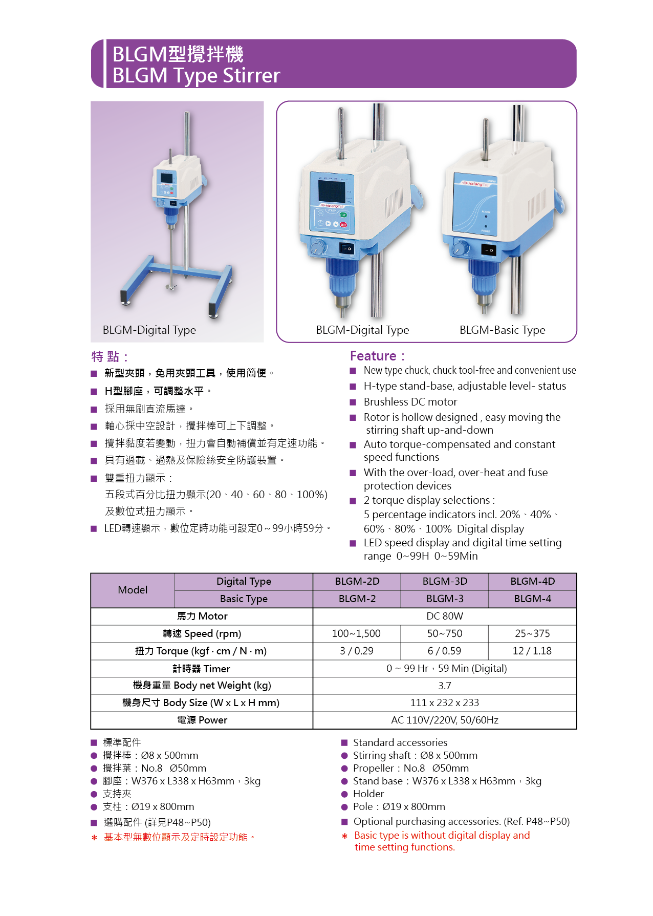 4、軸心採中空設計,攪拌棒可上下調整,夾頭可固定Ø10mm(含)以下之攪拌棒。