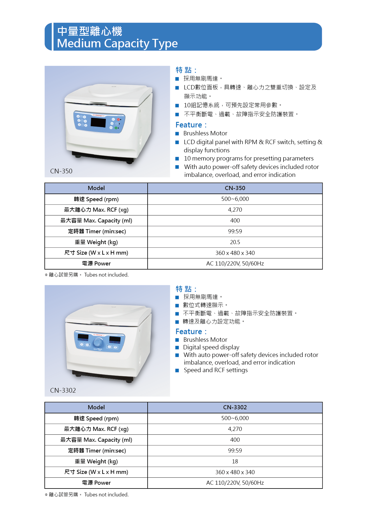 ● CN-350離心機規格: