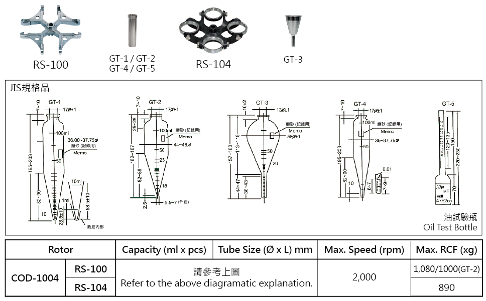 ● COD-1004油試驗用離心機規格: