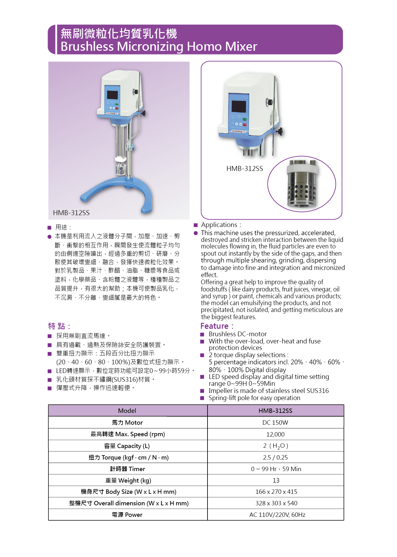 ● HMB-312SS特點: