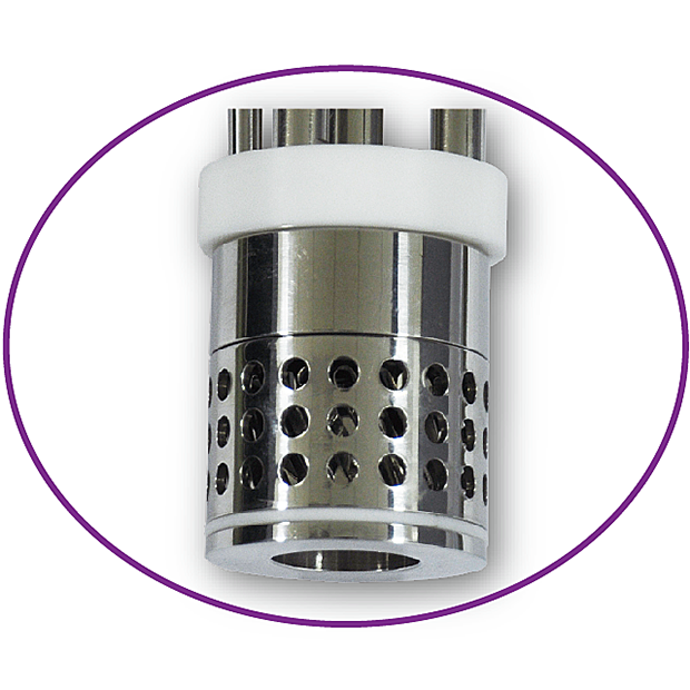,瞬間發生使流體粒子均勻的由側邊空隙噴出,經過多重的剪切、研磨、