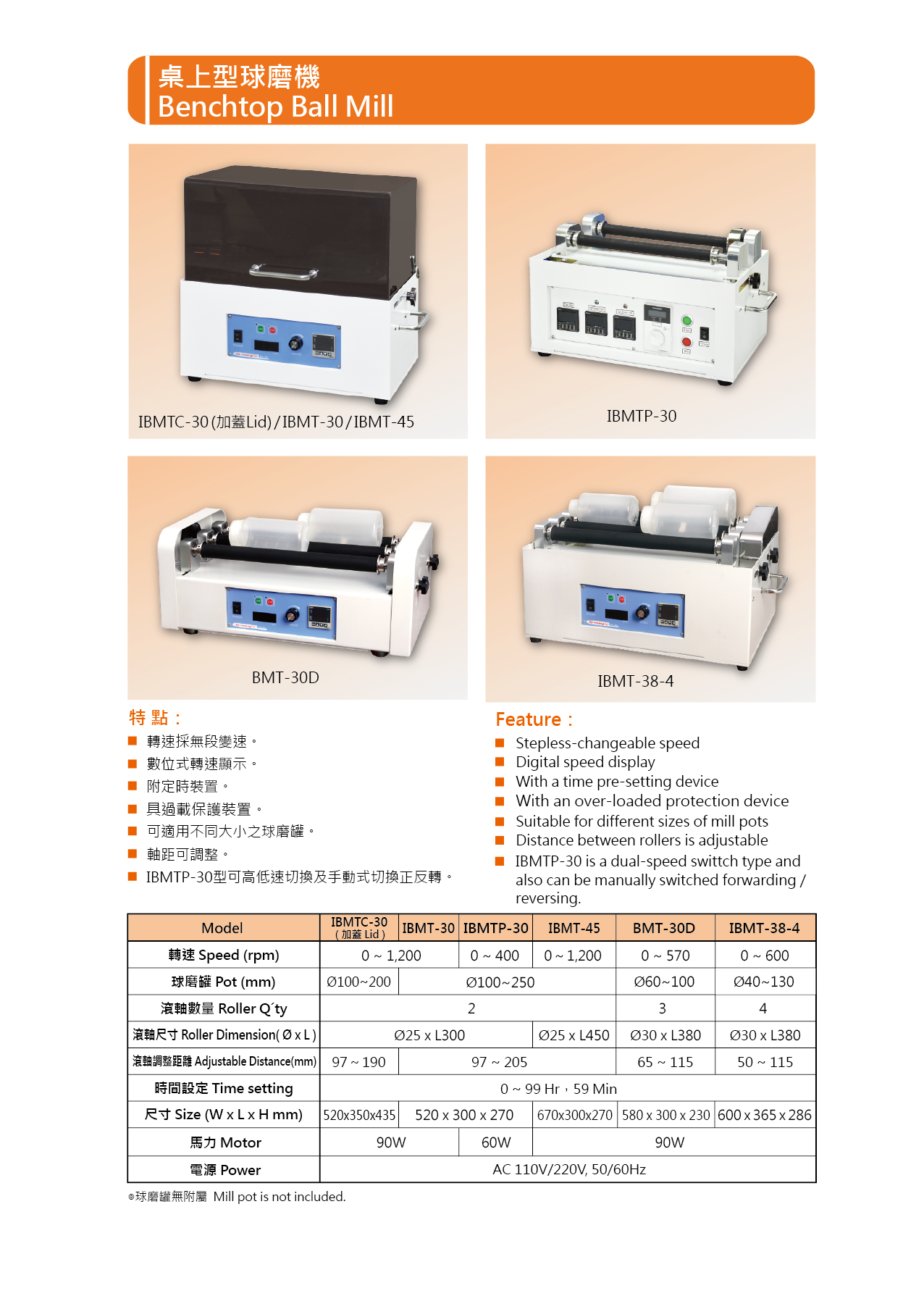 5、可適用不同大小之球磨罐。