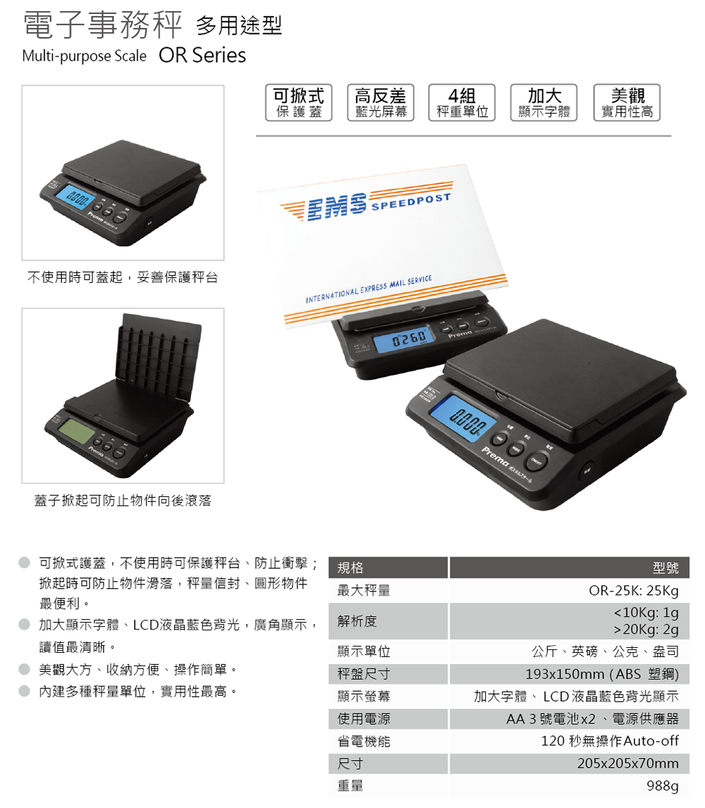 超大秤盤,秤盤不鏽鋼製,內建多種常用秤量單位,實用性高,配兩組透明護蓋,可當托盤盛裝樣本。