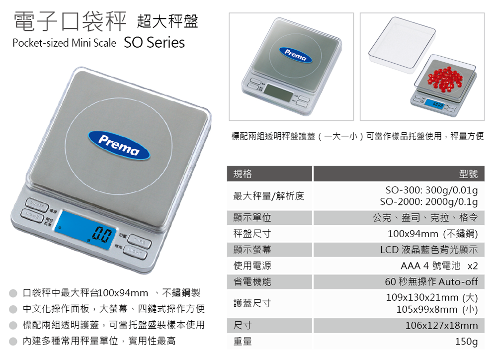 超大秤盤,秤盤不鏽鋼製,內建多種常用秤量單位,實用性高,配兩組透明護蓋,可當托盤盛裝樣本。