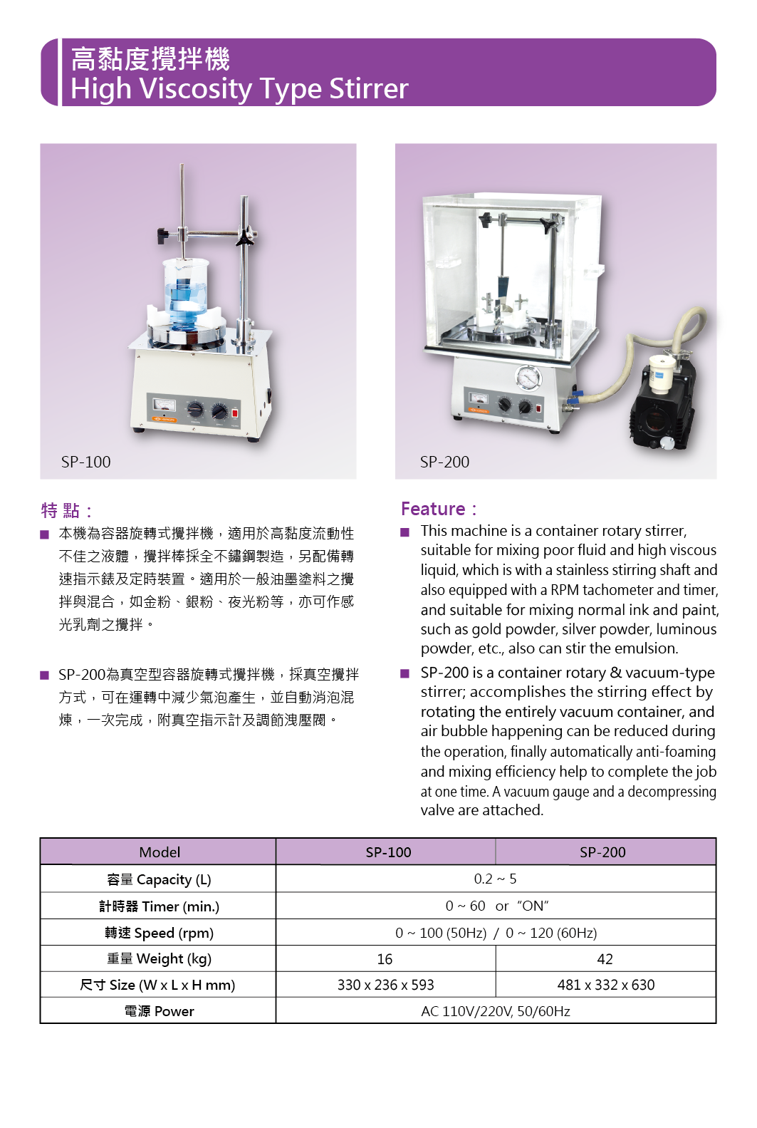 2、SP-200為真空型容器旋轉式攪拌機,採真空攪拌方式,