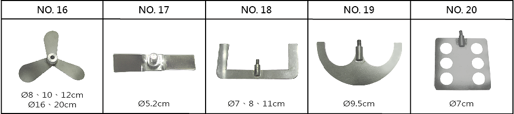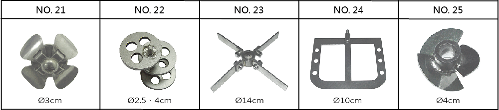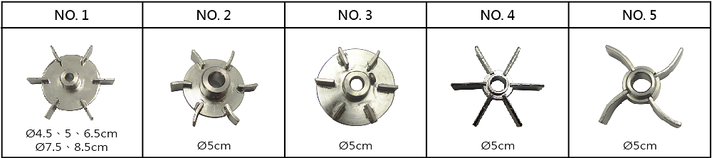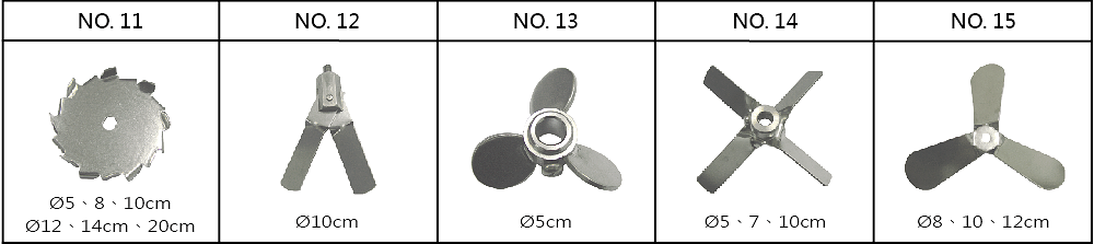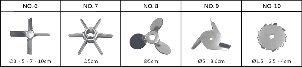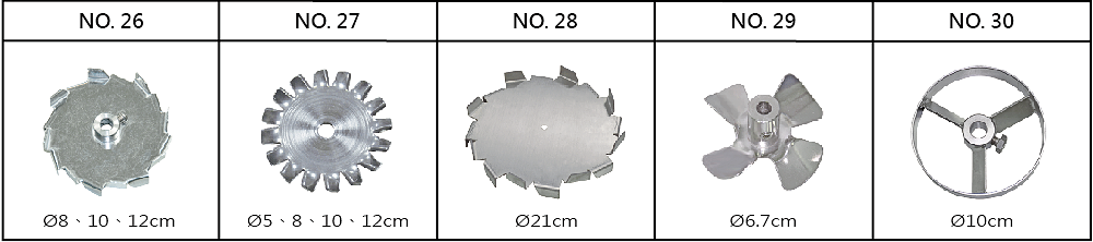 ♦高剪切葉片:均質分散式、渦輪式,常用於中高速運轉時,攪拌添加介質,用於均質、分散、乳化。