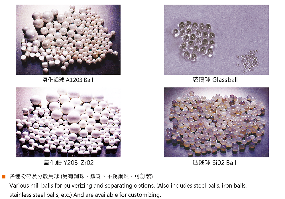 ●氧化鋁球磨珠、氧化鋯球磨珠、玻璃球磨珠、瑪瑙球磨珠: